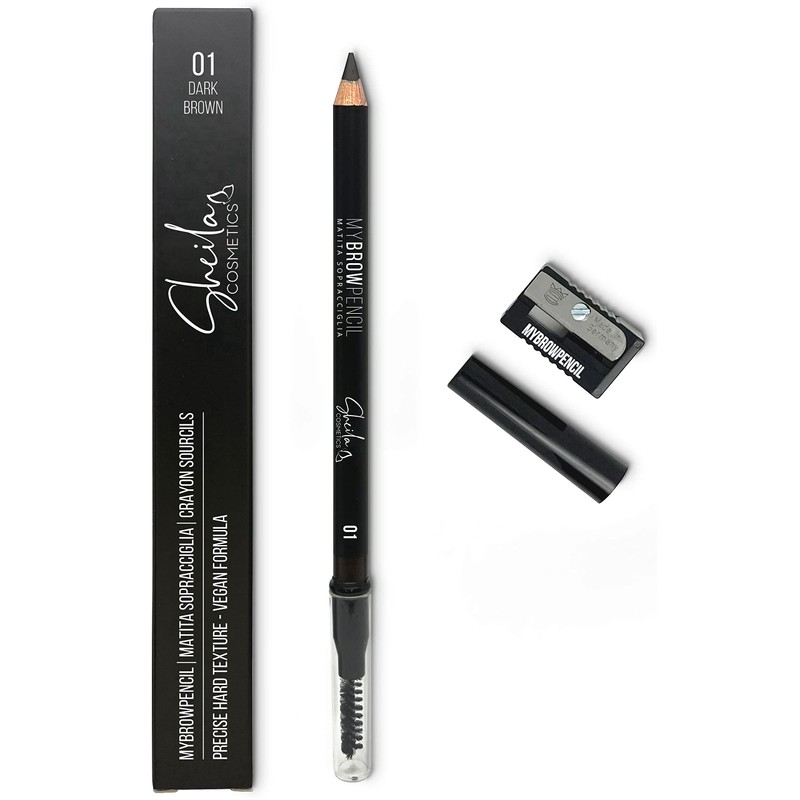 Sheila Cosmetics My Brow Pencil with Solid Formula, Dermatologically Tested, Includes Attached Sharpener, Made in Italy (01 Dark Brown)