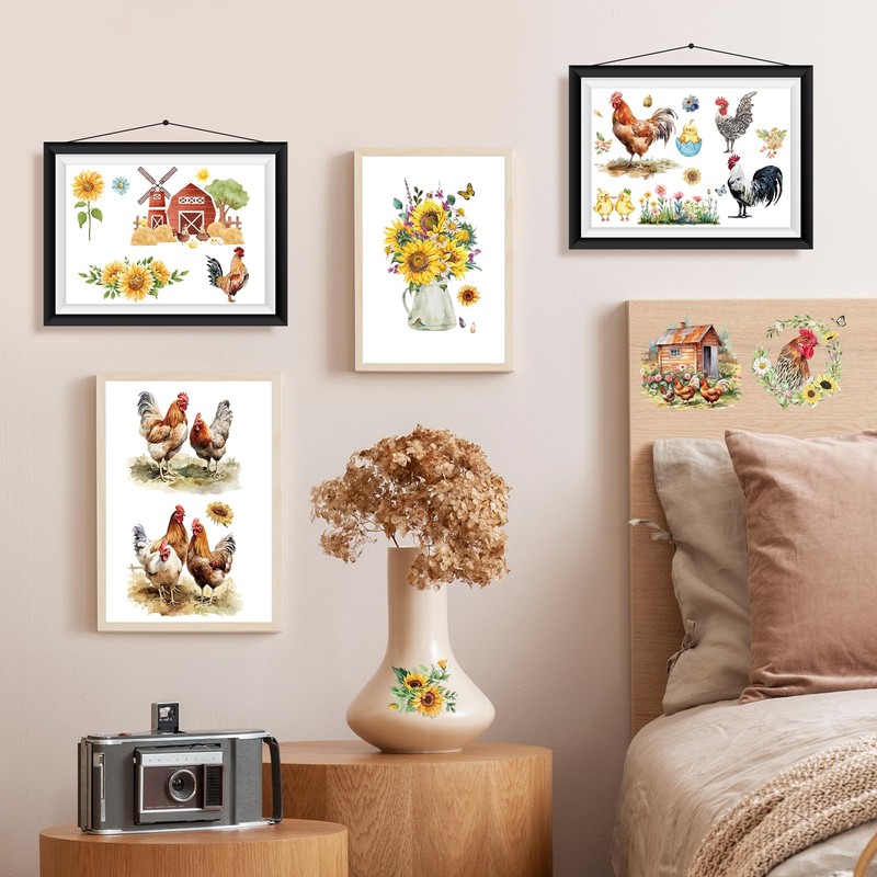 Shejdgart Chicken Rub on Transfers for Crafts - 6 Sheets Farm Rub on Transfer Stickers for Furniture Sunflower Rub on Transfers for Wood Glass Scrapbook DIY Home Decor 11.8x7.9 Inch