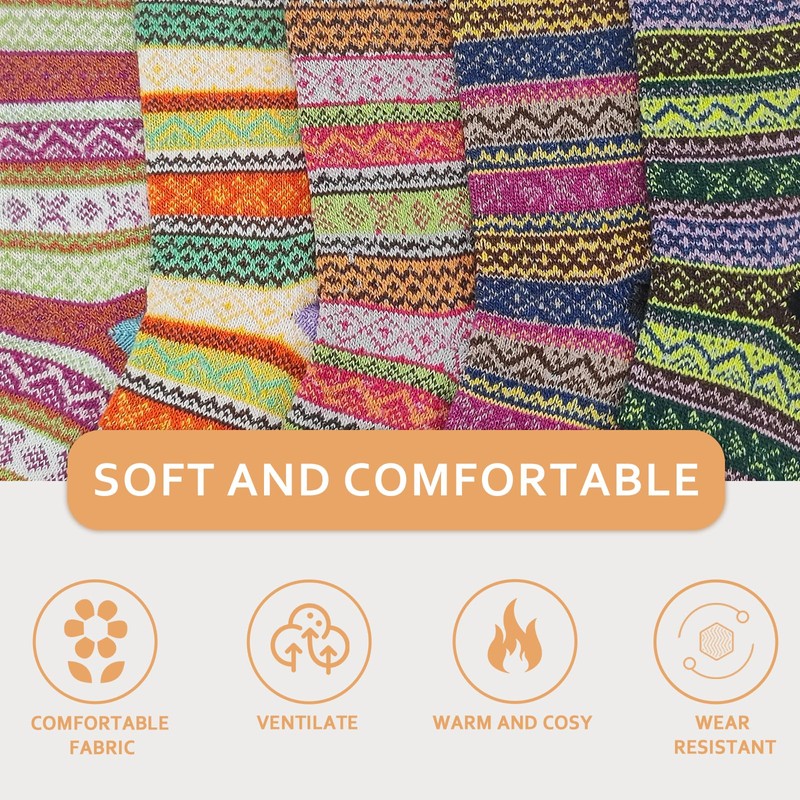 - High-quality fabric: Casual socks for women are made of 59.3% polyester, 22.4% acrylic, 8.6% viscose, 5.2% nylon, 1.8% cotton, 2.4% other fibres and 0.3% elastane. The fabric is thick, soft, breathable and comfortable and ensures a warm and dry experience.