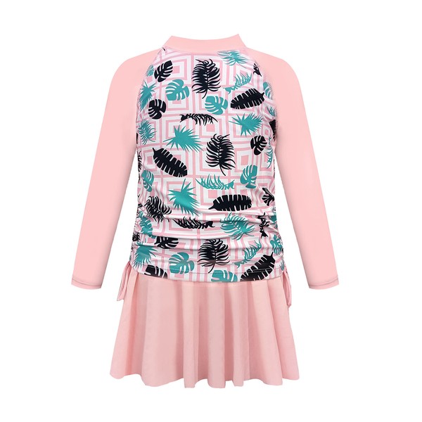 SHEKINI Girls Two Piece Rash Guard Long Sleeve Swimsuit UPF 50+ Protection Printed Swimsuit with Skirt 6-12T (Pink-Printing, 6-8 Years, 6_Years)