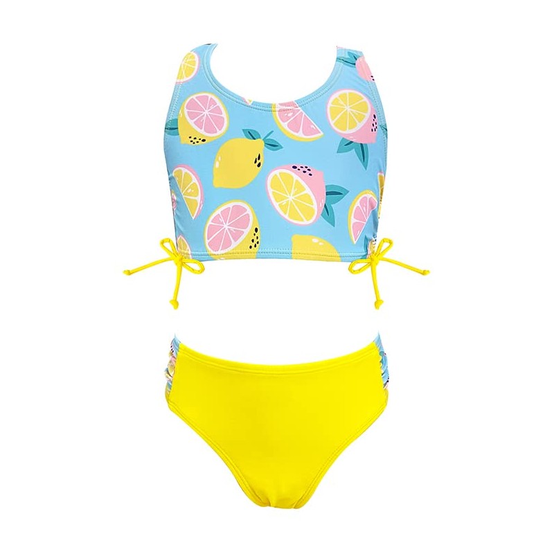 SHEKINI Girls' Two Piece Swimsuits Beautiful Print Pattern Sporty Vest Drawstring Bikini Top with Triangle Bikini Bottoms Girls Swimwear for 6-14 Years, yellow