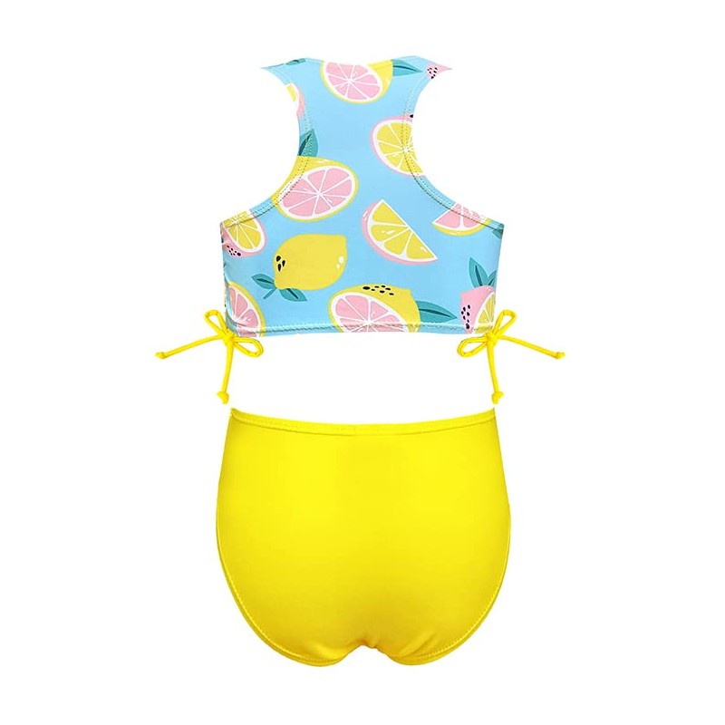 - Girls' two-piece swimsuit, beautiful print pattern, sporty vest, drawstring bikini top with triangle bikini bottoms, girls' swimwear for 6-22 years