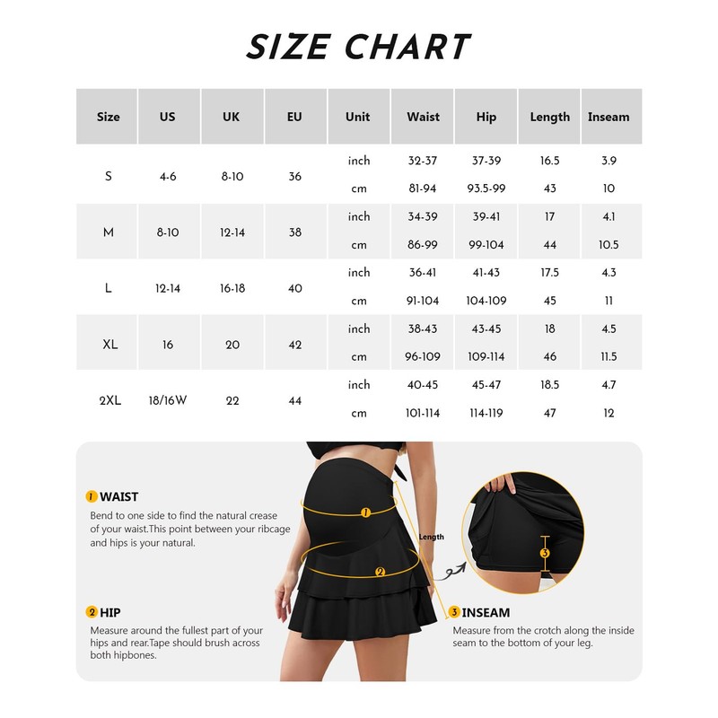 - Built-in Shorts with Pockets: The maternity double-layer ruffled flowy skirt. The inner layer is a stretch boy shorts with pockets to store cards, keys, mobile phones or other necessities.