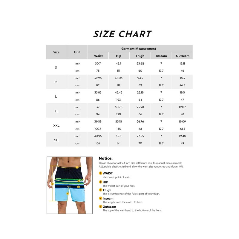 - Lightweight and fast drying: The Men's Board Shorts is made of fast drying and lightweight materials, making you feel comfortable at all times. The four-way stretching design ensures that the mens swimming trunks fits perfectly like skin, allowing you to move more freely.