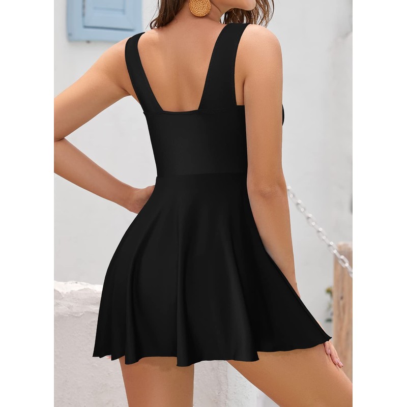- This swimsuit with built-in safety shorts offers timeless style and safe comfort, so that you can feel good. This sexy one-piece swimsuit with a swim skirt features an abdominal control effect for better curves, making you look feminine.