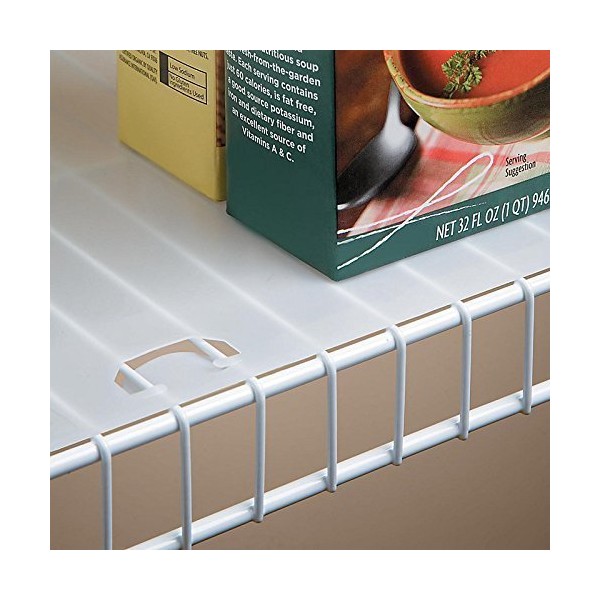 - Creates a smooth solid surface on wire shelving.