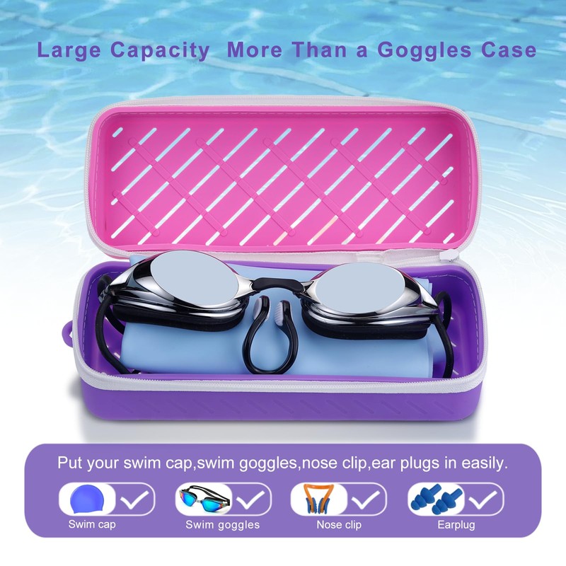 - Spacious Multi-Purpose Storage – More than just a swim goggles case! Its large capacity allows you to easily store your swim cap, earplugs, nose clip, keeping them well-organized.
