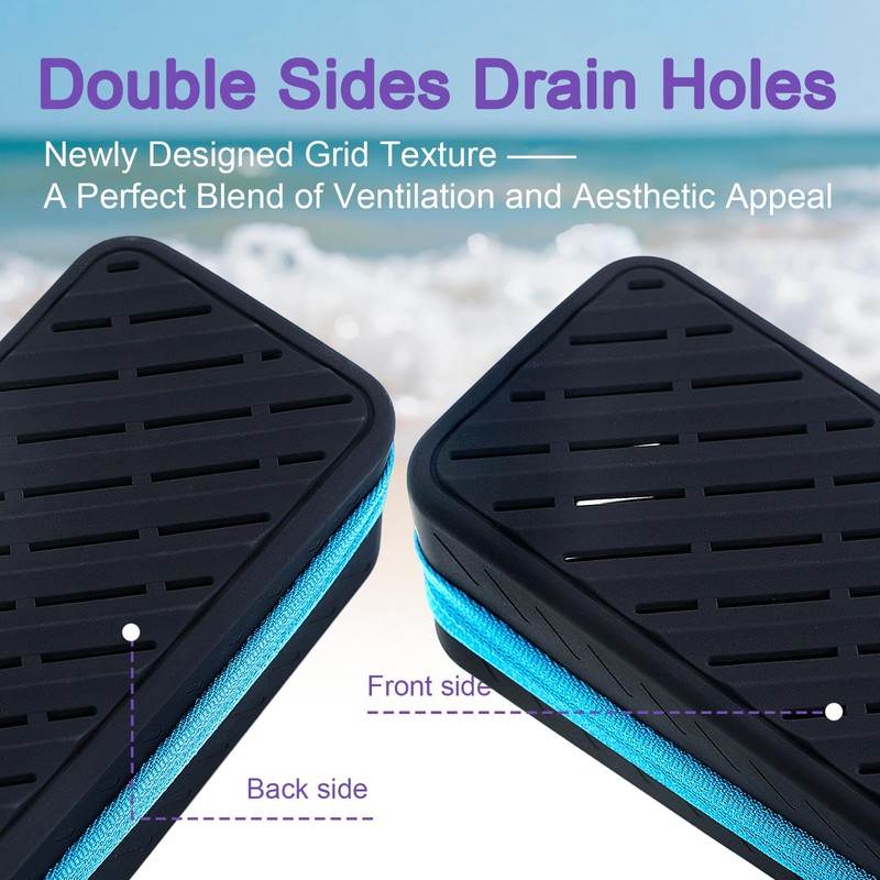 - Breathable Ventilation Design – Featuring a double-sided Diagonal Cross Grid design, this lightweight and portable swim goggles case ensures excellent airflow and quick drying, keeping your goggles, earplugs, and nose clip dry and free from dirt buildup.