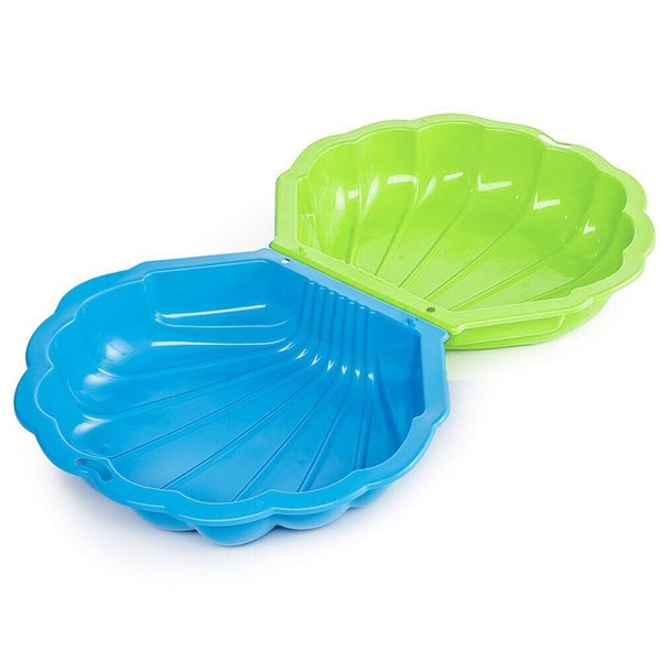 - Enjoy this fantastic shell shaped plastic sandpit in choice of colours. This excellent sand pit will be a much loved fun garden item for the kids and will give them hours of entertainment. Available to purchase in blue or green and as a single or pair of sand pits.