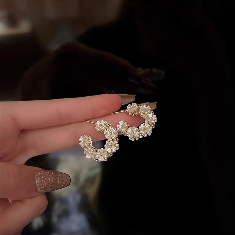 Shell Pearl Clover Open Hoop Earrings for Women 925 Sterling Silver Post Pin Gold Plated CZ Lucky 4 Leaves Love Heart Flower C Shaped Huggie Hoops Stud Cute Wedding Valentine Jewelry