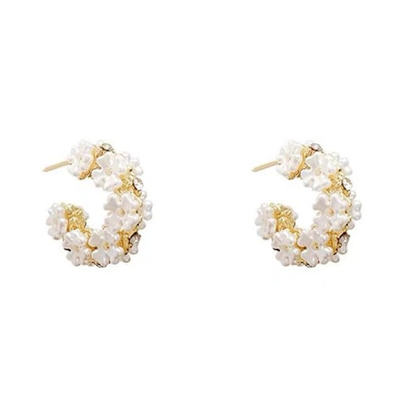 - Size & Details --- Shell Pearl Clover Open Hoop Earrings, CZ Lucky 4 Leaves Love Heart Flower C Shaped Hugggie Hoops Stud.