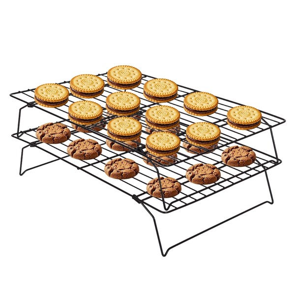 ShellKingdom Cooling Racks, Stainless Steel Non-Stick Baking Racks And Oven Safe Wire Cool Racks for Cookies, Cakes and Baking, 2-Tier, Foldable