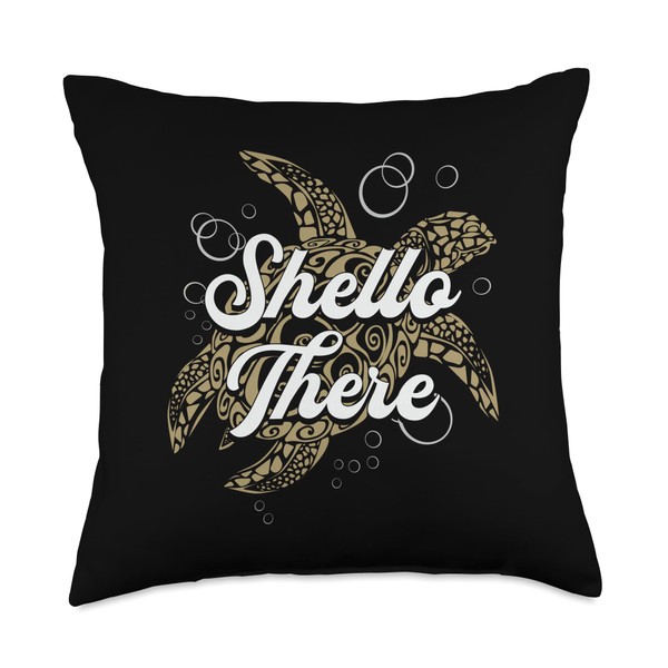 Shello There Turtle Fan Collection Shello Animals for Turtle Lover Funny Throw Pillow, 18x18, Multicolor