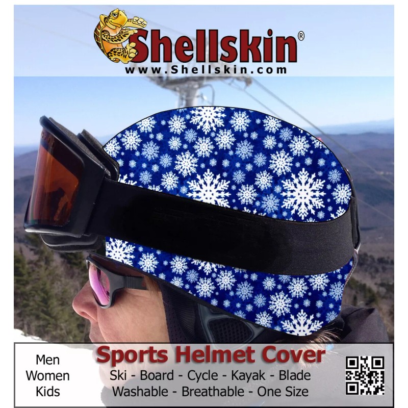 Shellskin.com Ski & Sport Helmet cover by Shellskin. Royal/White Snowflake print Spandx.1 Size