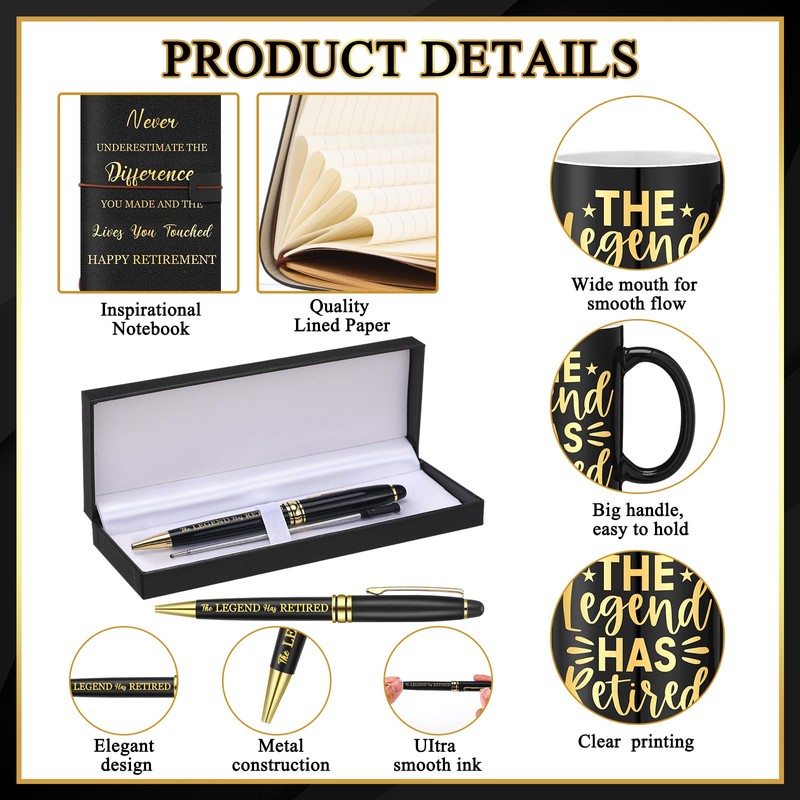 - Reminders of Faith: each item inside this black retirement gift set has retired engraved or printed on it; They serve as daily pieces that remind you of your retirement plan; From the mug to the notebook and metal retirement bookmark, it inspires unwavering devotion and can be ideal retirement gifts for men