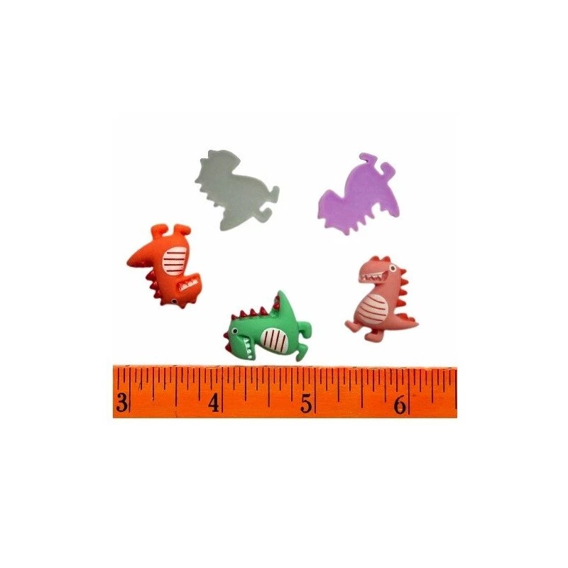 Dancing Dinosaurs Embellishment Set Detailed, 3D Flat Back, Resin Embellishments by Shelly's Buttons and More Includes 5 pieces Flat back embellishments Measures approximately 1″ Novelty Embellishments for Sewing, Crafts, Scrapbooking. We have buttons galore! Shellysbuttonsandmore.com is the largest online distributor for buttons and embellishment products We have been in business for over 25+ years and have served over 4 million satisfied customer worldwide Don't see what you're looking for? Please email us! United States Shipping: Purchase 10 or more items and shipping is FREE |