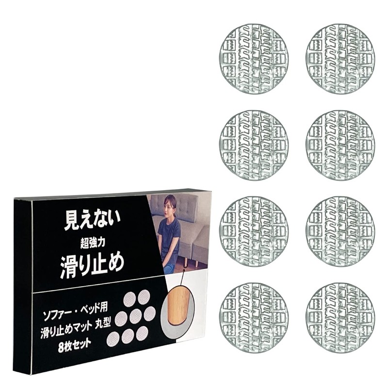 Shelly Sofa, Anti-Slip, Invisible Super Strong Sofa Bed, Rubber, Elastomer, Round, 1.6 inches (4 cm), 8 Pieces, Clear