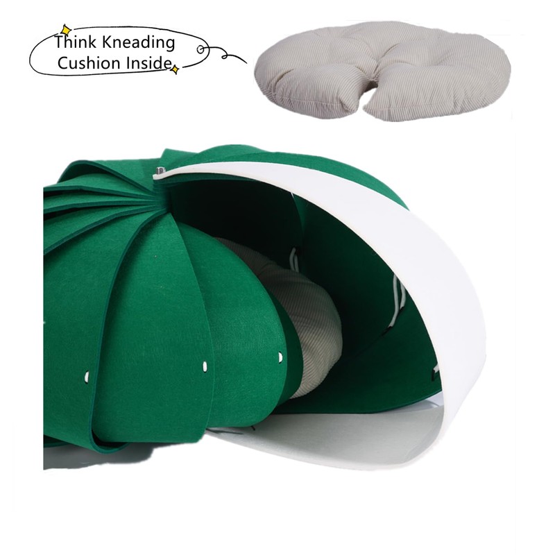 SHENGOCASE Large Aesthetic Enclosed Nautilus Shaped Pet Cat Bed House, Felt Tunnel Hide Play House with Removable Pillow Cushion, Cat Cave Hideaway (Green, 28" x 23" x 12")
