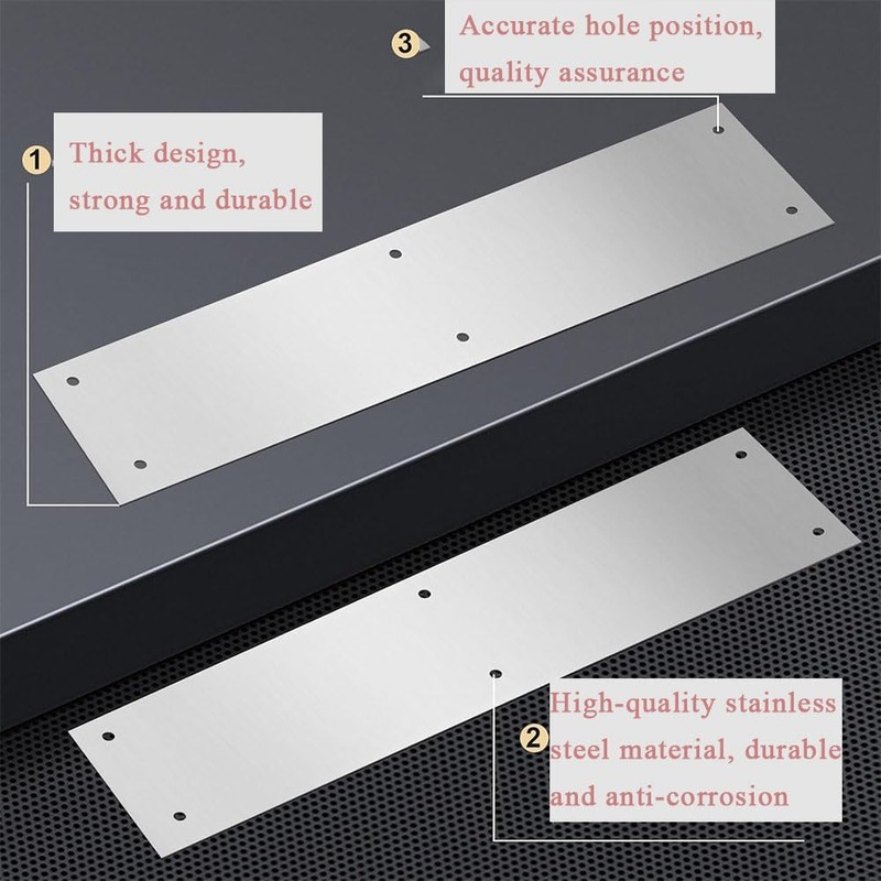 - Perfect Size for Versatile Use: Measuring 300 x 80mm, these 1.2mm thick plates come with 4 pre-drilled holes and fixing screws, making them ideal for both commercial and residential door protection