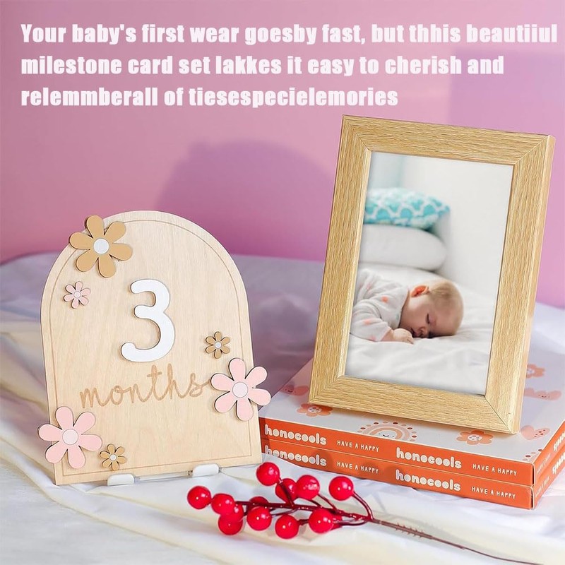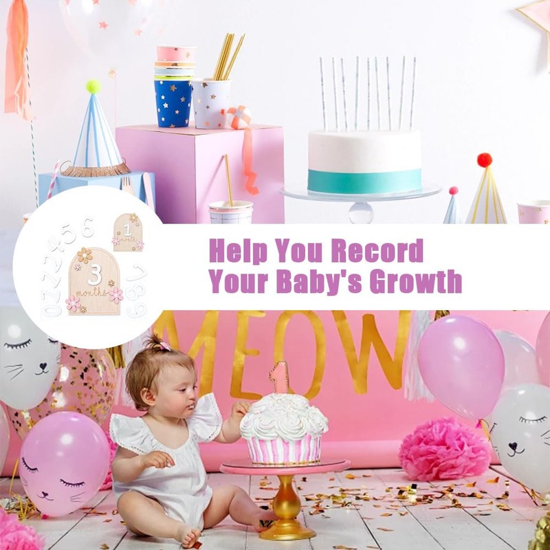 - Capture Precious Memories: Track your baby’s monthly growth with these Wooden Monthly Milestone Discs.Each disc showcases a unique 3D floral design, adding a touch of charm to every milestone photo