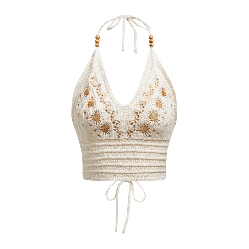 - Features: halter top for women, open back, tie back, embroidered, backless and sleeveless, hippie top