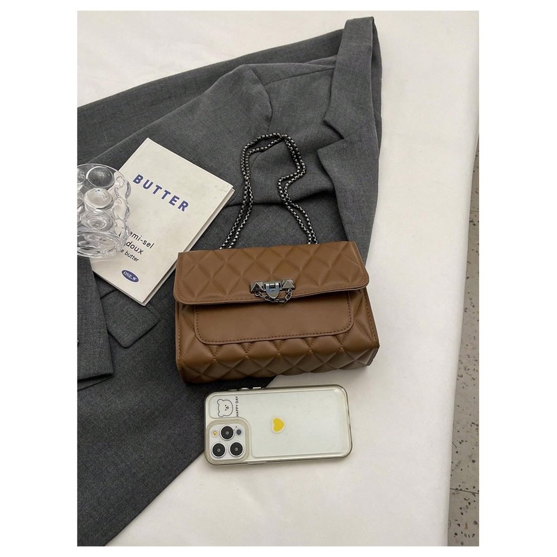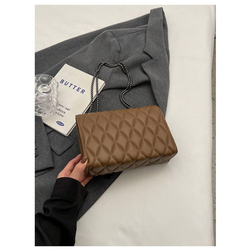 SHENHE Women's Quilted Leather Shoulder Bag Buckled Clutch Purse Small Crossbody Bags with Chain, Coffee Brown, One Size