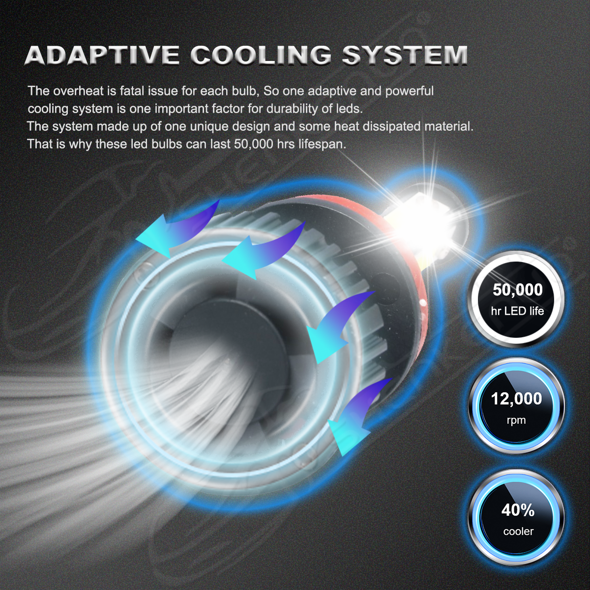 SHENKENUO 4 Sides H11 LED Headlight High or Low Beam Bulbs 240W 24000LM 6000K White 2Pcs