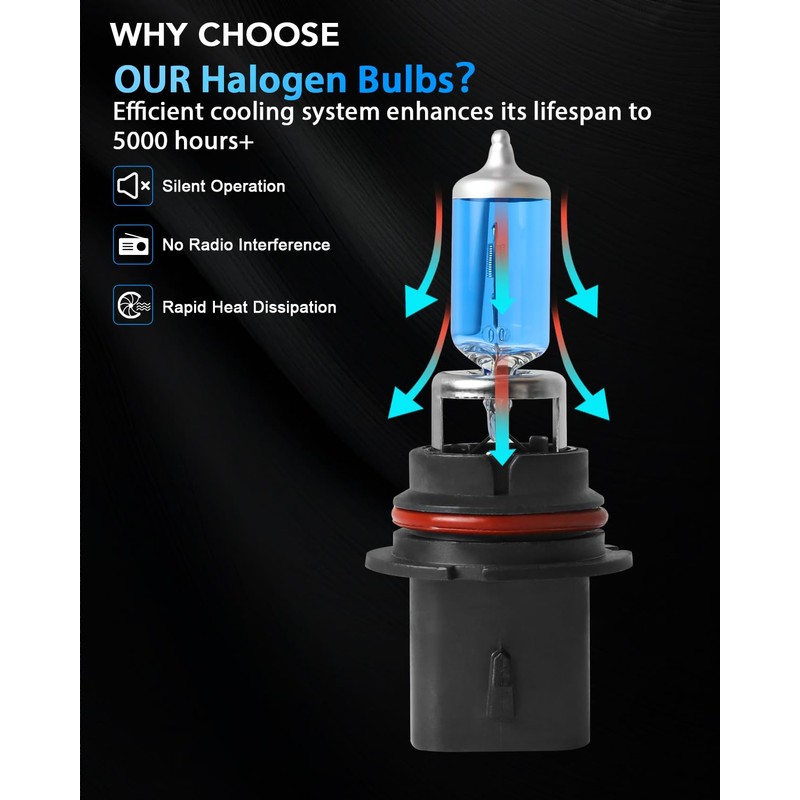 - 【Perfect Beam Pattern】:SHENKENUO Ultra - High Performance Halogen Bulbs perfectly mimic the original halogen beam pattern, delivering wider angle and farther range light on the road. No glare to oncoming traffic, and no dark spots ensure a safer drive.