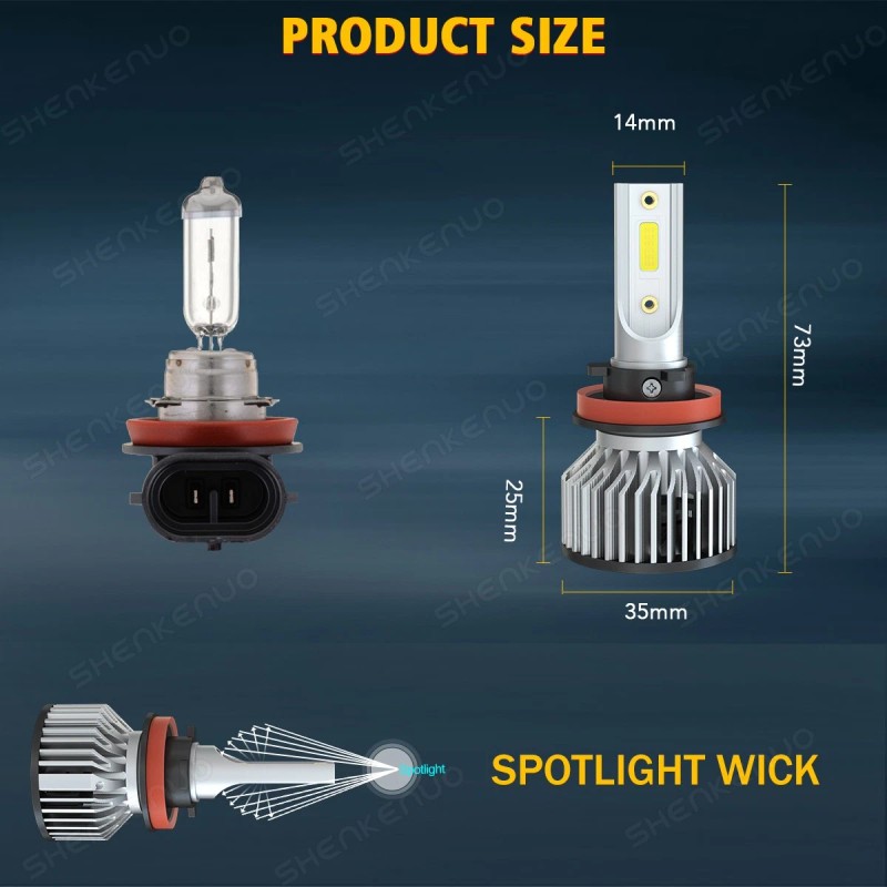 Upgraded Brightness -- Impress you with super brightness, lighting up the whole road! Highly efficient lighting surpasses 98% of normal bulbs, SHENKENUO F7 9005 H11 H11 bulbs combo can keep a high level of visibility and lighting experience.