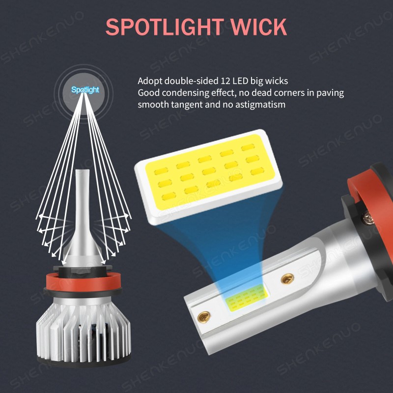 SHENKENUO H11 LED Headlight Super Bright Bulbs LOW BEAM Conversion Kit White 6000K 2-Pack
