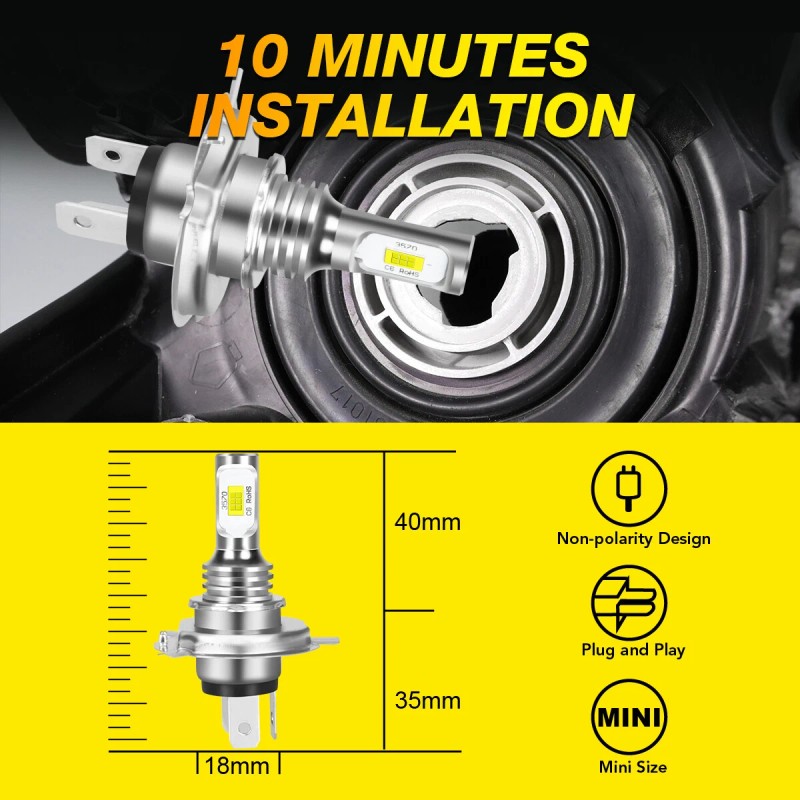 2Pcs H4 LED Headlight High/Low Beam Bulbs