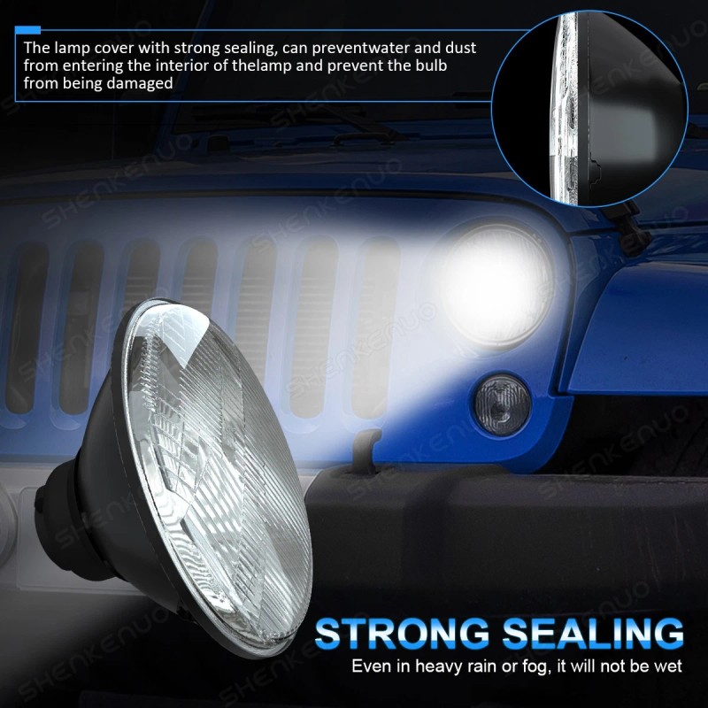 Pair (2 Bulbs Right And Left) 7" Inch Diamond Crystal Clear Semi Sealed Beam Glass Lens Housing Headlights. This Pair Of Headlights Includes 80W Super White H4 Light Bulbs. These Headlights Have A Clean Custom Look But Fit Into The Stock Buckets And Plug Into The Stock Wiring Without Modification.
