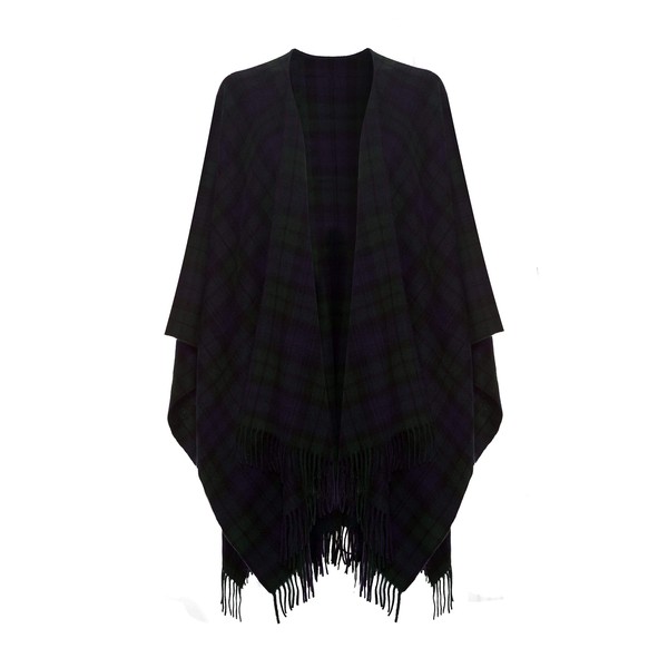 Shepherds Land 100% Lambswool Ruana, BlackWatch