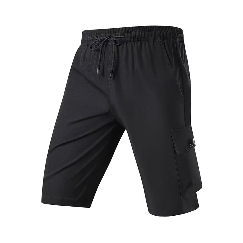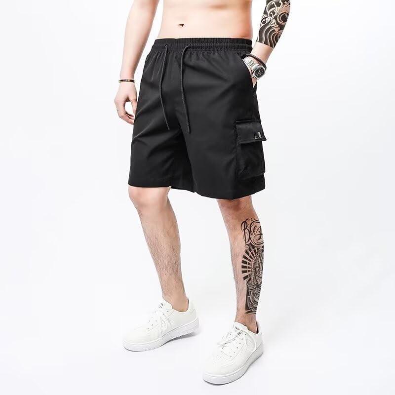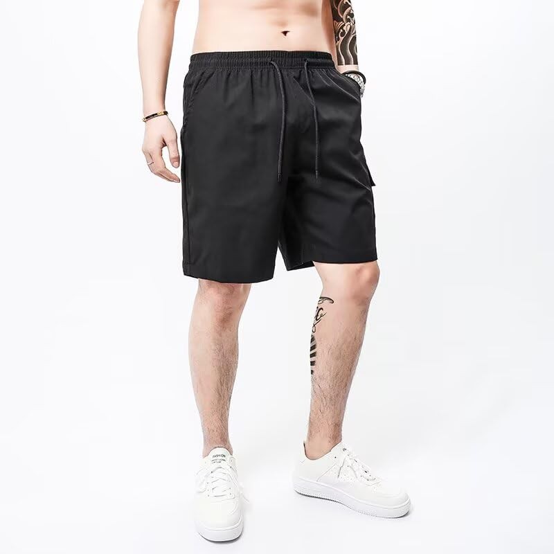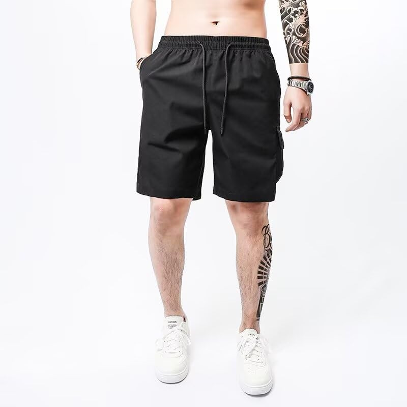 shepretty Men's Cargo Shorts, Elasticated Waistband with Drawstring, Side Pockets, Summer Time, black, L
