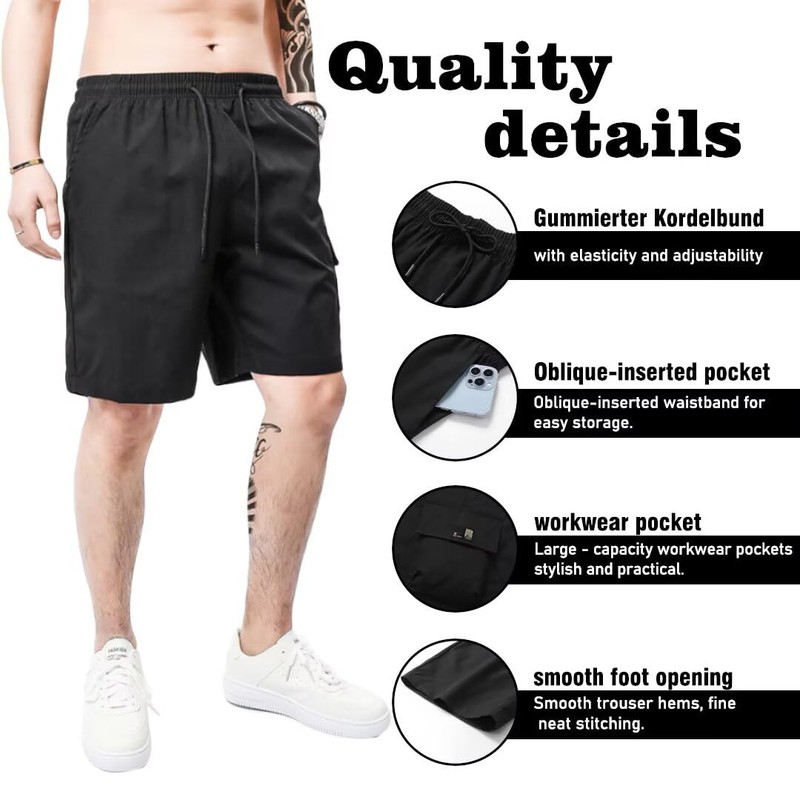 • Material and design: high-quality cargo shorts made of durable material with elastic waistband and practical drawstring for optimal comfort