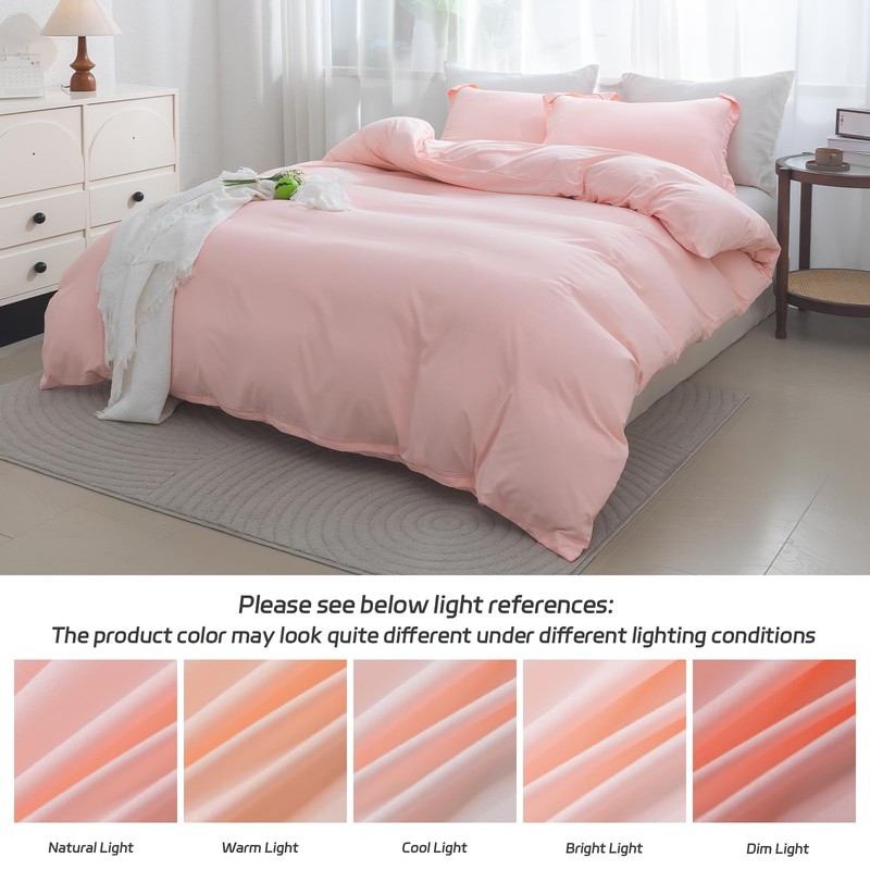 SheRest Pink Duvet Cover Twin Size - Soft Brushed Microfiber, 1 Duvet Cover 68x90 Inches with Zipper Closure 8 Ties & 1 Pillow Sham, Breathable Bedding Set for All Season (No Comforter)