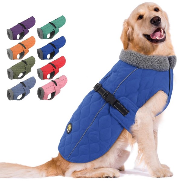 Sheripet Dog Cold Weather Coats, Fleece Lining Small/Medium/Large Dog Jackets for Winter, Wide Range Adjustable Dog Winter Clothes for Large Dogs, Dark Blue XL