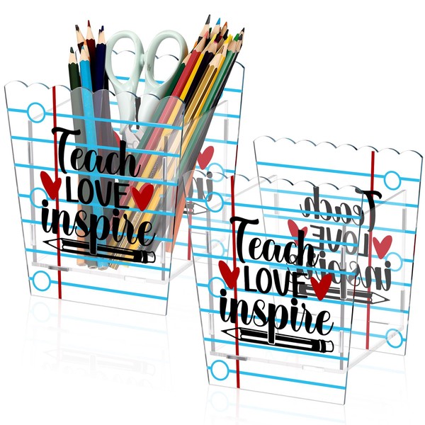 - Package Includes: you will receive 2 acrylic pencil holders for your desk, designed in the shape of a notebook, each pencil holder is printed with a compliment to the teacher, can be applied as a thank you gift to the teacher