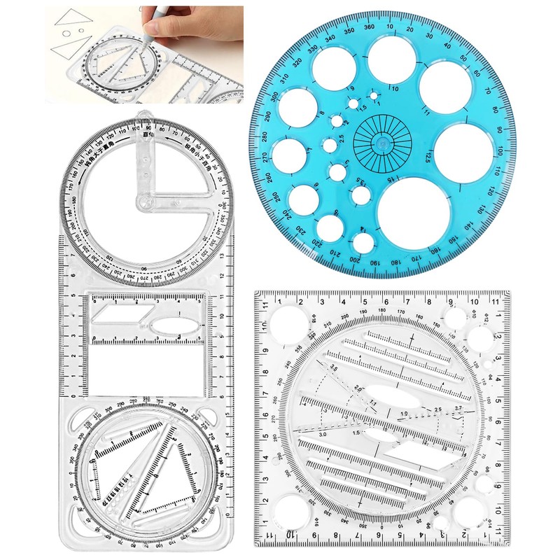 - Geometric measuring ruler kit: you will receive 3 multi-purpose drawing rulers designed for different purposes, including 1 primary drawing ruler, 1 rectangular protractor, 1 circular protractor. Use these measuring tools to make your work easier.