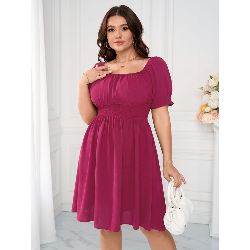 - Features: Plus size casual dresses features classic square neck, smocked puff sleeves, high waist a-line dress, short mini dress. The flowy A-line hem of swing mini dress add a chic and elegant touch, making it a must-have for wardrobe