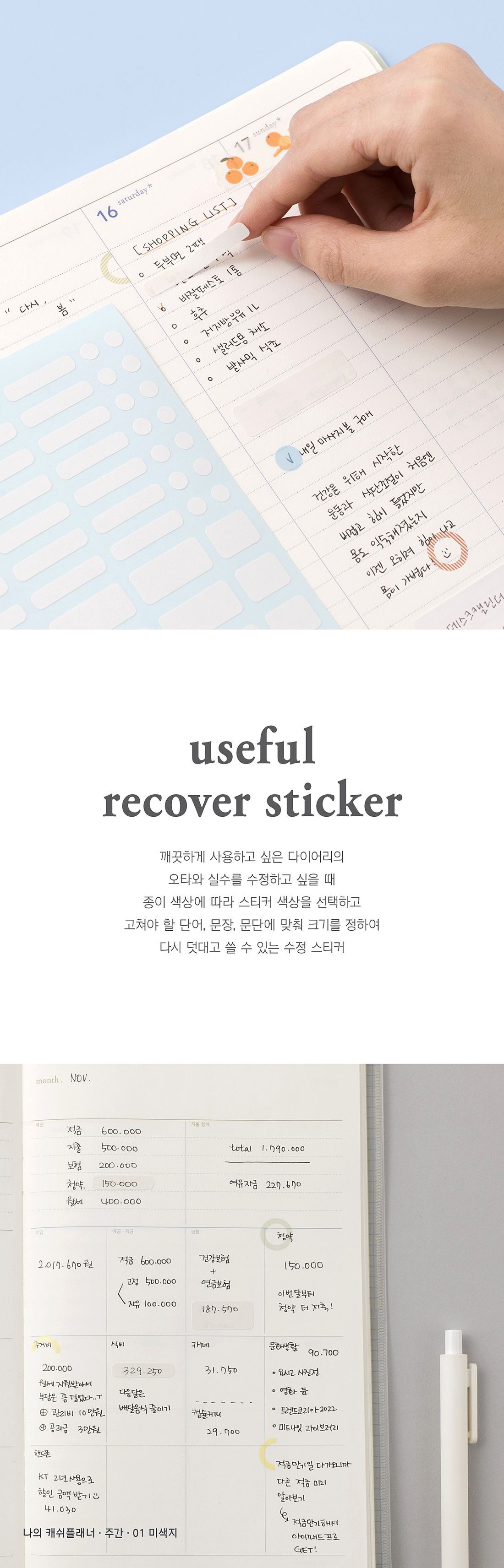 SHG Easy Correction Diary Typo Cover Sticker 02 White Paper 3ea