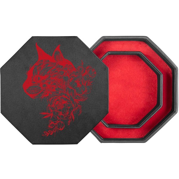 shibby Dice Board with Cube Tray and Lid for All Tabletop Games - 23.5 cm Floral M2-2 (Red)