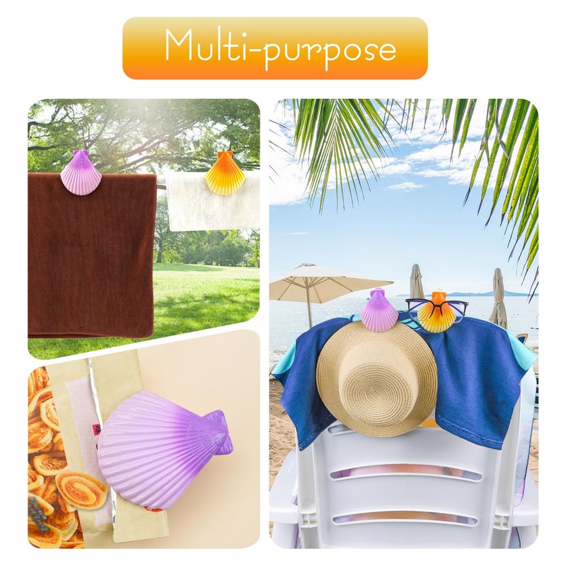 • Package contents: Shells beach towel clips (2 Orange, 2 Purple)
