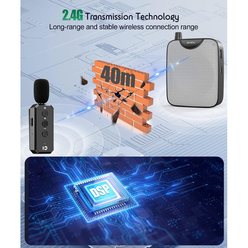 - 【 Transmission Technology Breakthrough 】SHIDU is the only product of its kind on the market that breaks through the technological barriers to enable speakers and microphones to support a 40 meter/131 feet wireless connection, while playing music via a 5.3 Bluetooth connection for a hassle-free audio experience.
