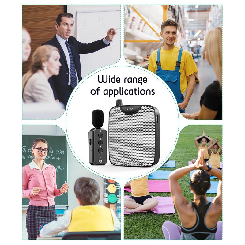 - 【 Widely Used 】Portable microphone and speaker are small in size and stable in performance. They are very suitable for amplifying your voice and protecting your throat. They can be applied to teaching, training, singing, coaching, tour guides, shopping malls, speeches, yoga, outdoor, etc.