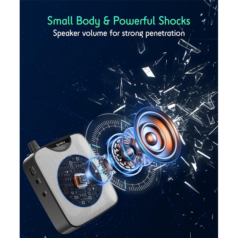 - 【 True Acoustic Power Amplifier 】SHIDU 30W wireless voice amplifier is paired with a 2.4G lavalier microphone, which has more advanced sound sensitivity and stronger sound penetration, stable connection and no noise, and can cover a large classroom of about 21,000 square feet (1950㎡) with 300 people.