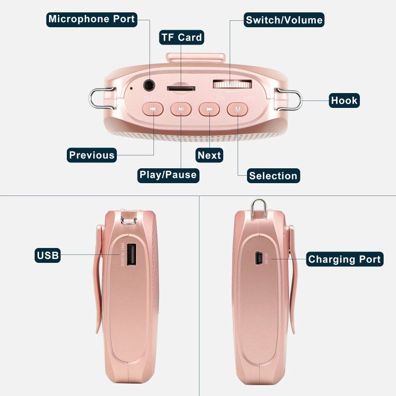 - Long Battery life and Multifunctional - The voice amplifier with a 1800mAh built-in big rechargeable lithium battery provides 8 to 12 hours amplify time and 6 to 10 hours music time with a full charge.And the voice amplifier takes only 3-5 hours fully charged.And you can use it not only as a voice amplifier but a music player from a TF card or USB flash disk.