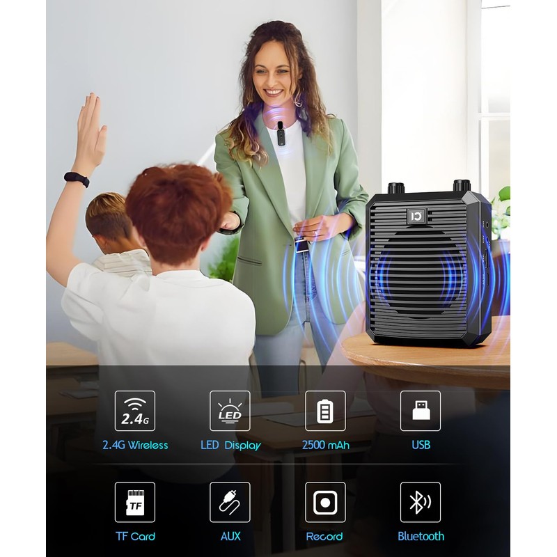 • LOUD AND CLEAR VOICE: The output power of the voice amplifier is 10W, The sound range is 10,000 sq.ft. It is a must-have for teachers or teaching staff, the sound can cover the whole classroom, can let 100 students hear your voice clearly, effectively protect your throat.