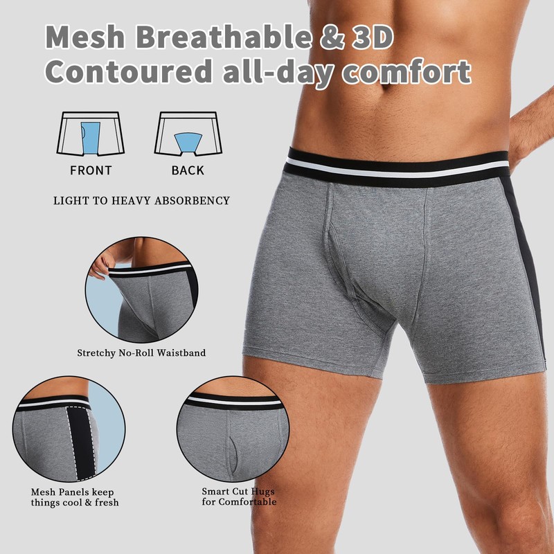 - Looks Like Regular Underwear: men's incontinence underwear combines look & feel of regular boxer briefs with breathable & durable pad & functional fly, ensuring confidence in public. Full front-to-back leak protection & loose elastic for daily ease