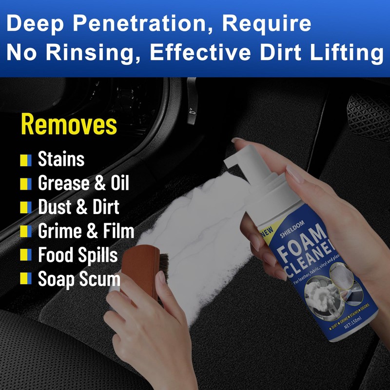 SHIELDOM Car Interior Cleaner Kit Multifunctional Foam Cleaner, Clean Cars Seat Carpet Upholstery with Detailing Brush & Towel Deep Inside Cleaning Remove Stain from Leather/Fabric/Vinyl/Plastic - 5oz